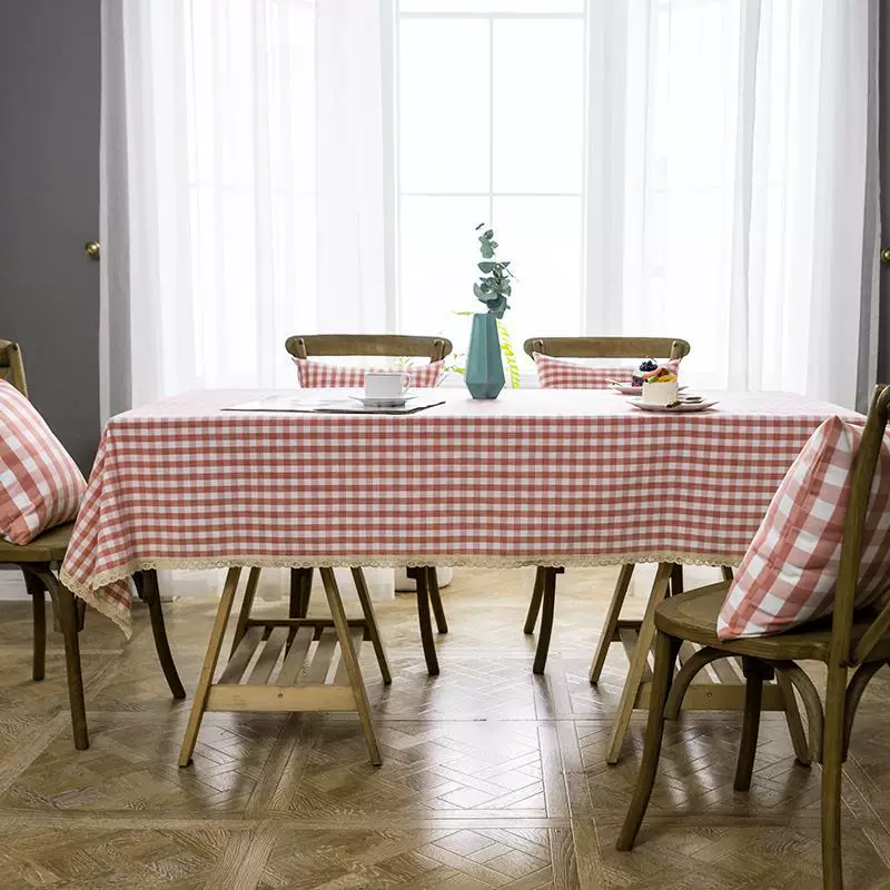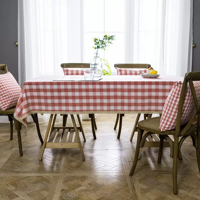 鮮やかな格子模様が食卓を華やかに彩るテーブルクロス。