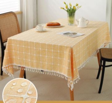 上質なリネン素材を使用した防水機能付きテーブルクロス。水滴をはじく特性に加え、綿麻混紡の柔らかな風合いが魅力です。繊細な刺繍ラインが食卓に上品さをプラスし、裾のタッセルフリンジがリネン特有の優雅な雰囲気を醸し出します。どんなシーンにもフィットし、日常の食卓を特別な空間に変えるアイテムです。
