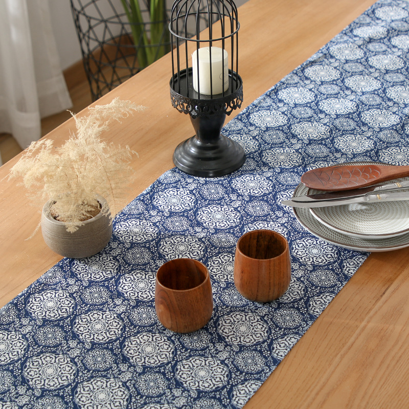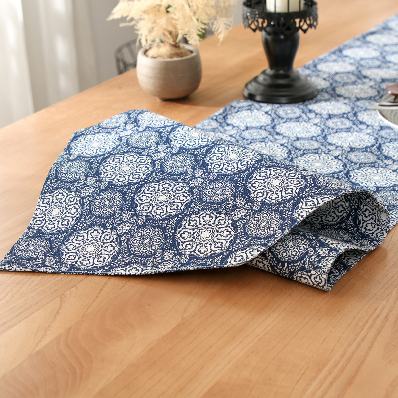 端に施された装飾的なタッセルがアクセントとなり、テーブルクロスとしての存在感を際立たせます。