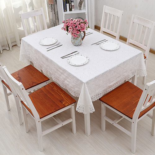 レースの透かし模様が軽やかな印象を与え、テーブルクロスとして使用することで空間全体に優雅な雰囲気をもたらします。