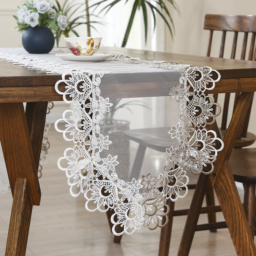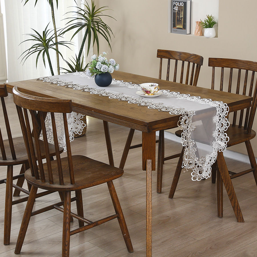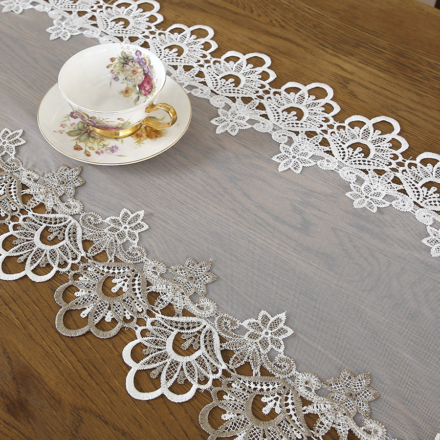 繊細な花柄刺繍と優美なレース縁取りが美しいセンタークロスです。